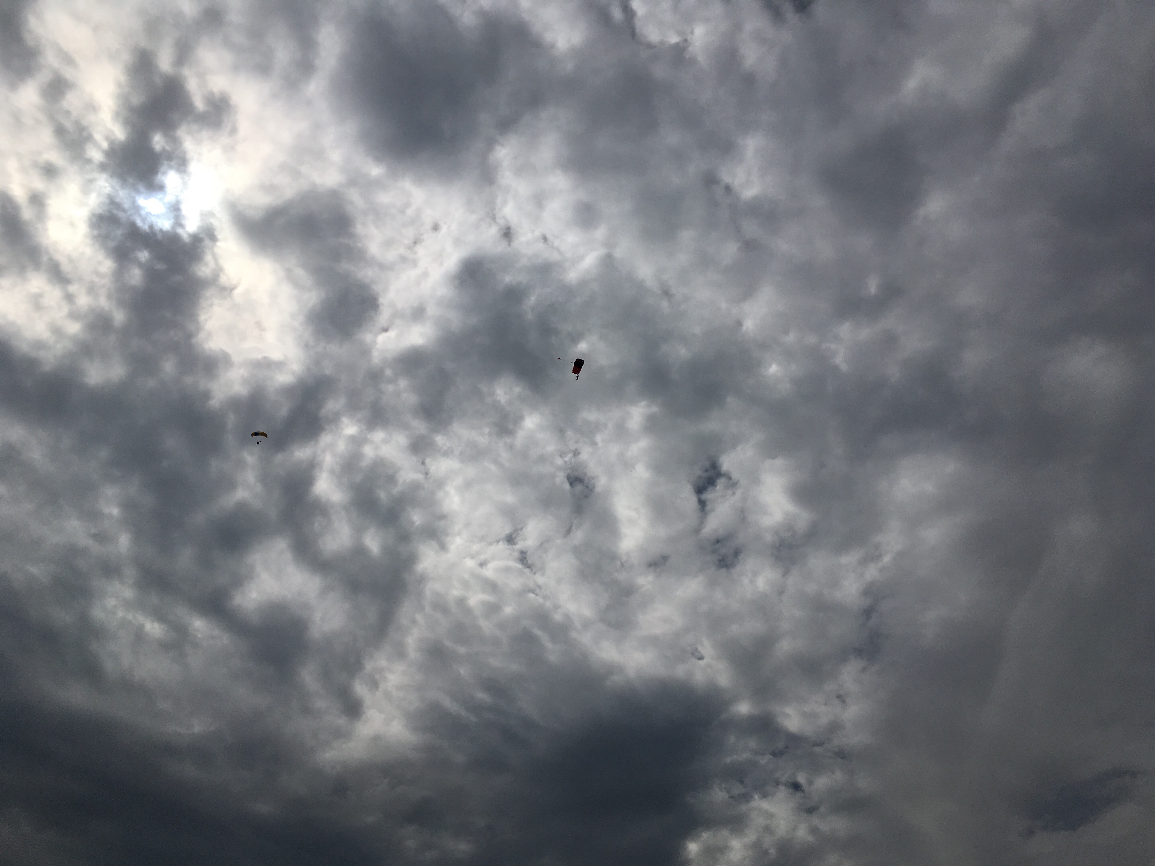 Mit geöffnetem Schirm glitten wir langsam Richtung Erde. Die Angst wurde vom Glück übertroffen. Nach erfolgter, weicher, Landung machte ich mich auf mich bei den Menschen zu bedanken, denen ich diesen Sprung zu verdanken hatte. Die hatten mir ein unvergessliches Erlebnis geschenkt.