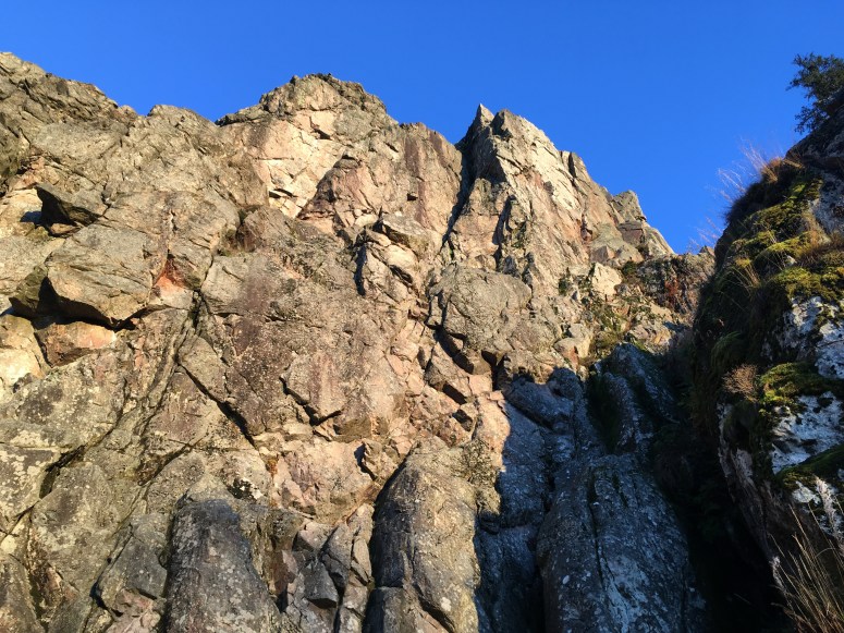 Am Kandel angekommen zeigt sich der aus Gneis bestehende Fels in der Nachmittagssonne.