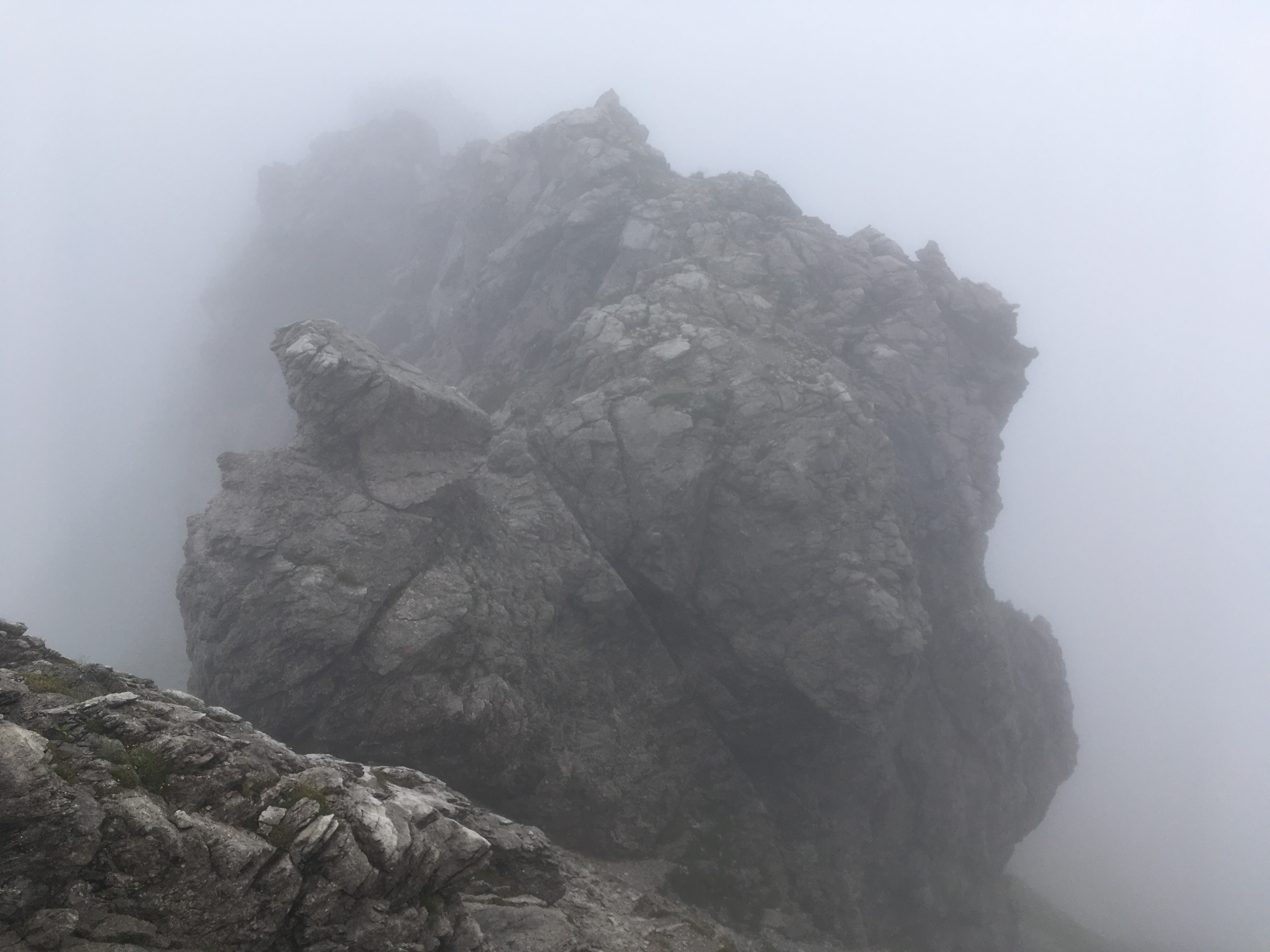 Leider ließ uns an diesem Tag der Ausblick im Stich. Doch war der Nebel auch unser Glück. Vor und nach uns war kein Mensch auf dem Grat zu sehen. Wir hatten den Weg für uns. Was wäre es auch für eine Enttäuschung gewesen – unterwegs auf dem Nebelhorn ohne Nebel?!