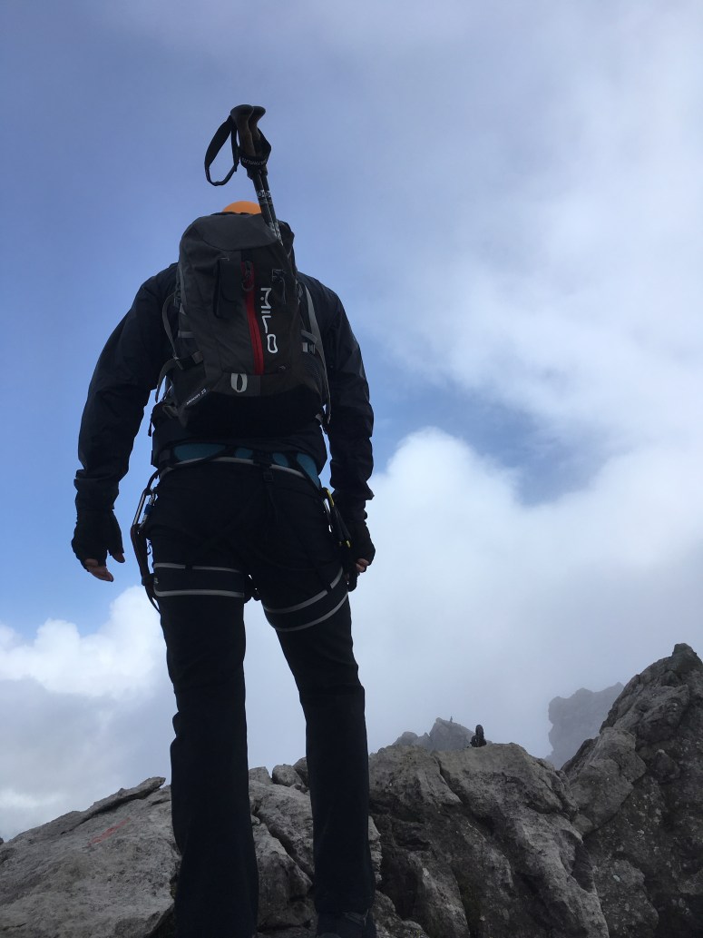 Doch gut ausgerüstet mit der nötigen alpinen Erfahrung und folgendem Material könnt ihr diesen Gratklettersteig nicht nur bei Sonnenschein überstehen: