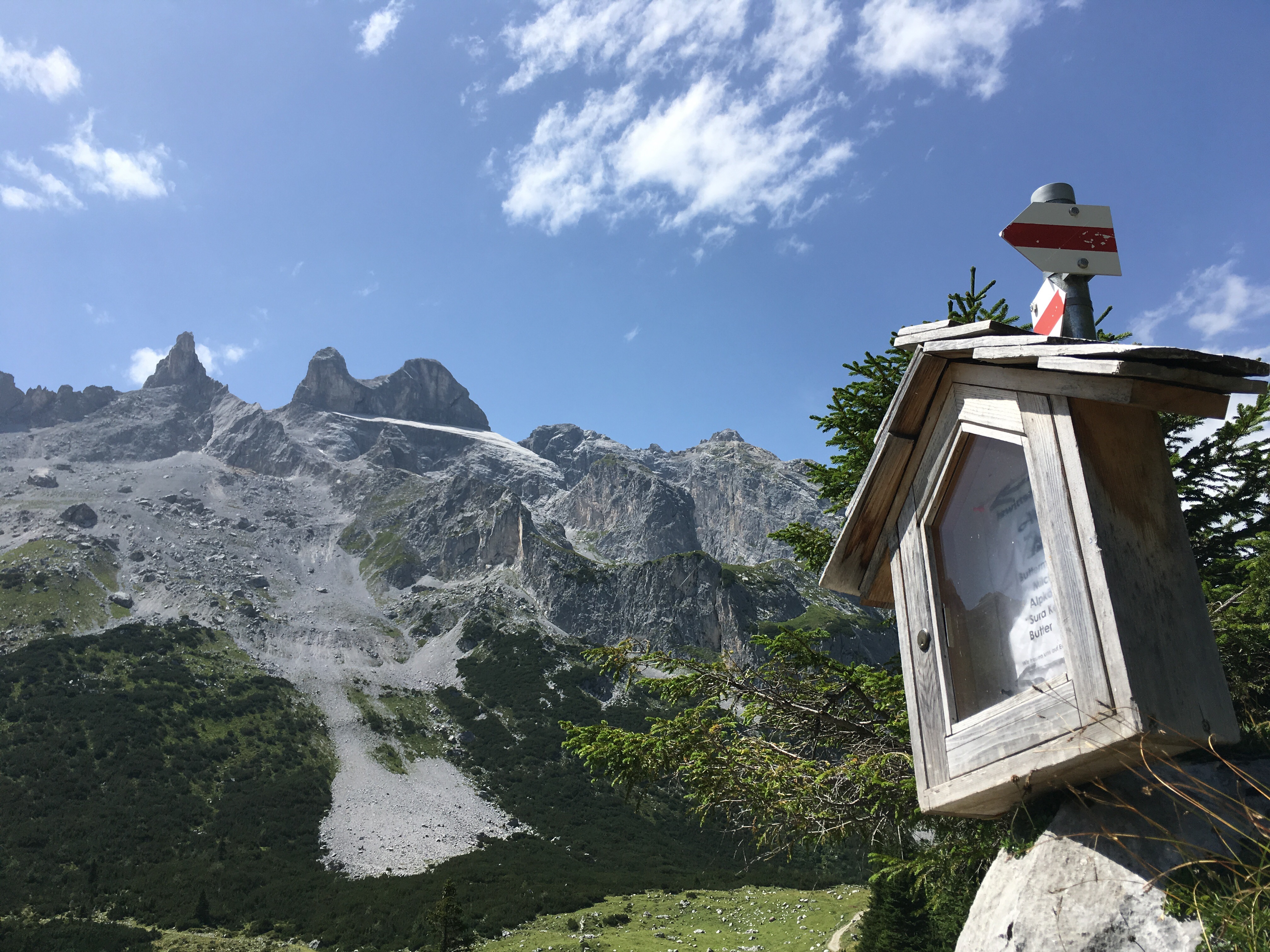 Wir waren wegen des Felses auf der Hütte und da wollten wir jetzt auch wieder hin. Die Beine, noch ein wenig schwer vom gestrigen Klettersteig, fühlen sich in den Bergstiefeln wieder so richtig wohl. Das setzt für den Zustieg zum Klettergarten noch ein bisschen Kraft frei.