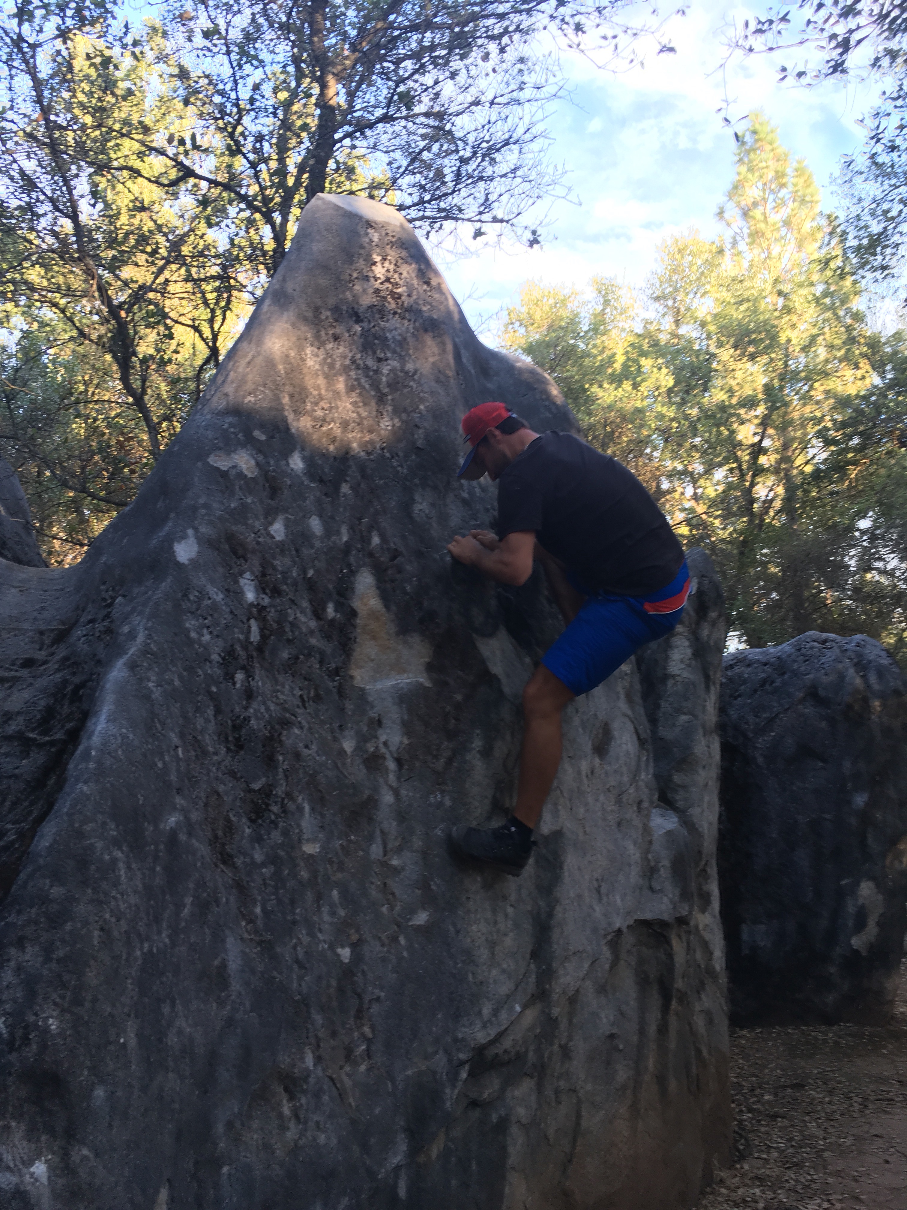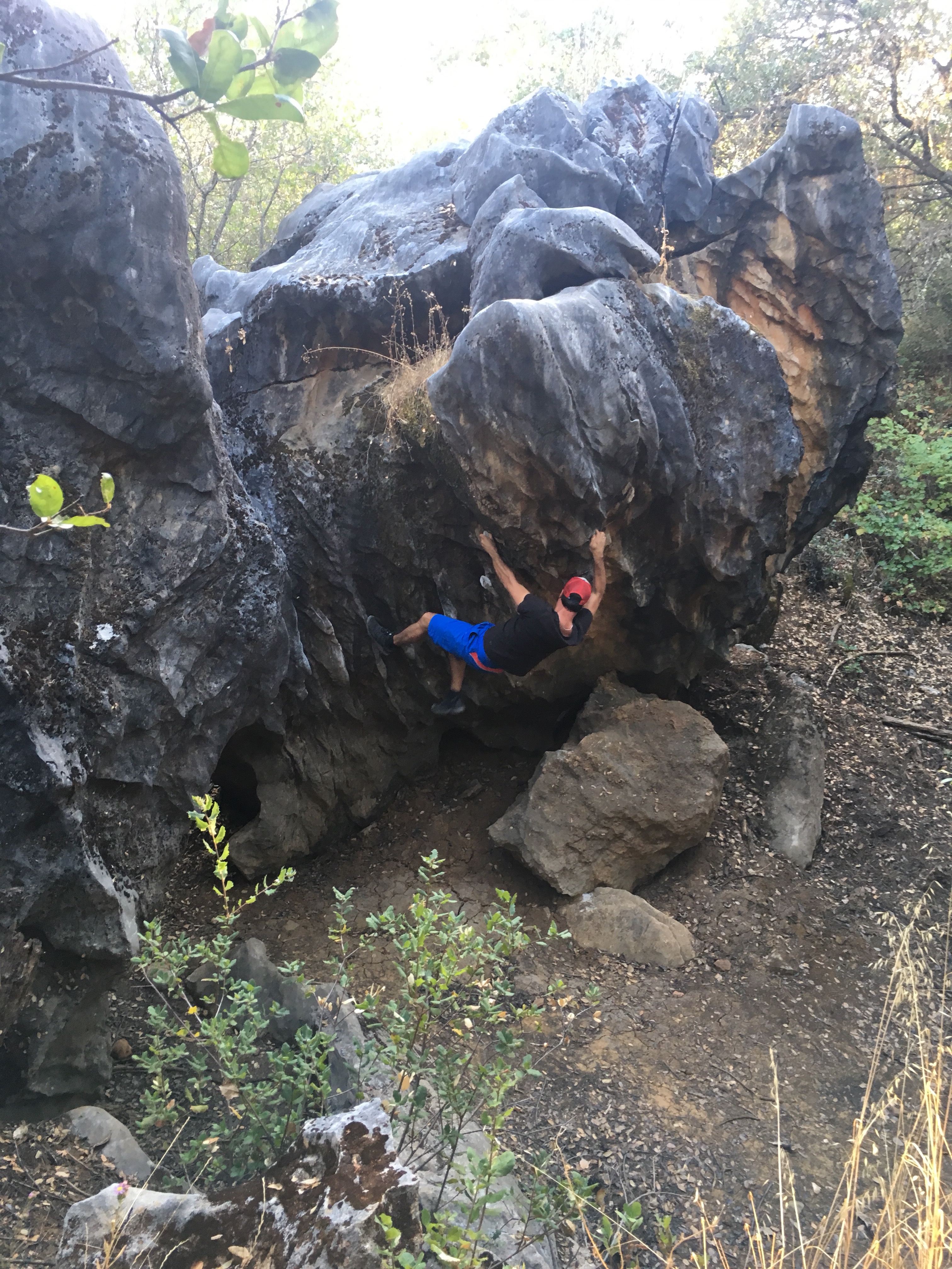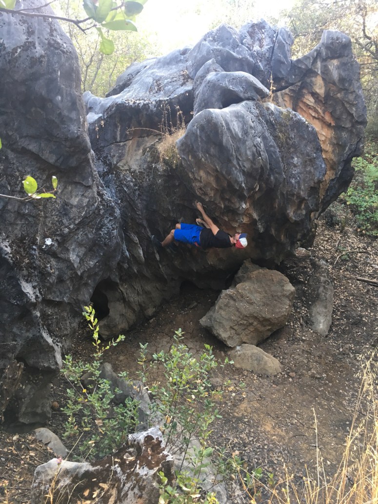 Nach meinem letzten Beitrag habe ich mich in den Flieger in Richtung Kalifornien gesetzt. Nach unzähligen Stunden im Flugzeug sitzend haben mir die Beine und Arme gejuckt – ich musste mich wieder bewegen. Die idealen Voraussetzungen hierfür fand ich in der fabelhaften Umgebung von Columbia. Steile und teils spitze Felsen türmen sich bis zu fünf Meter vor einem auf. Ein Traum für jedes Kind und jeden der schon einmal auf einen kurzen Felsen geklettert ist. Hier finden sich tolle Routen für einen ganzen Bouldertag.