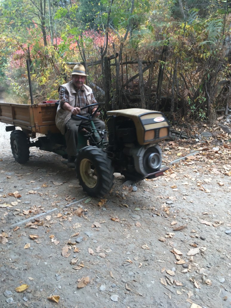 Nachdem wir auf der anderen Seite des Baches angekommen sind geht es leicht bergauf auf einen etwas angenehmeren Weg. Hier kommen einem auch schon die ersten Kastaniensammler entgegen.