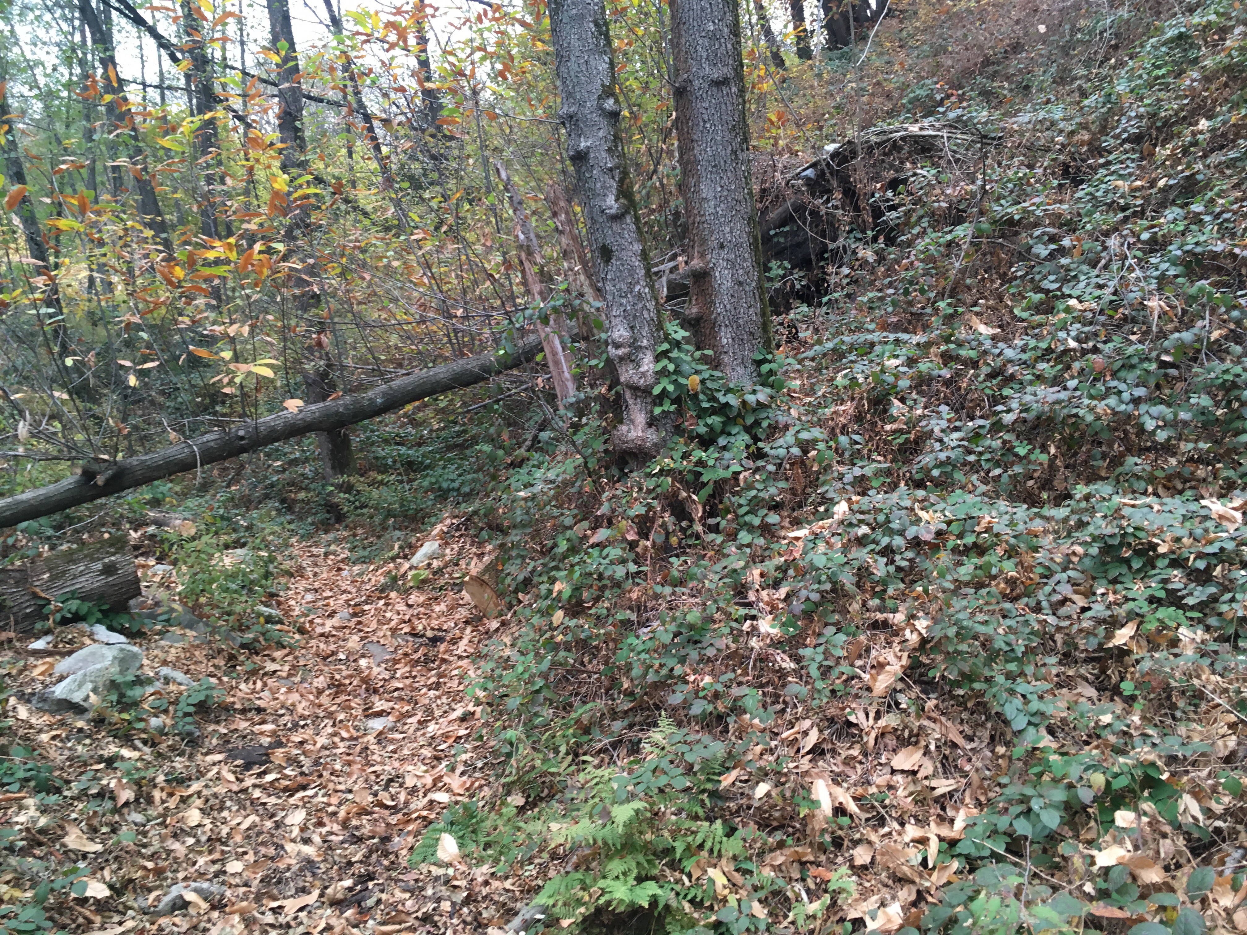 Los geht es in Premeno am Langensee (Lago Maggiore). Das Dorf liegt auf ca. 800 Höhenmeter und demnach mehr als 600 HM über dem See. Zunächst geht es auf einem spärlich geteerten Weg nur bergab bis man in den Wald des Riserva naturale di Ghiffa hineinläuft. Im Frühjahr und Sommer hat man hier einen wunderbaren Wanderweg welchem man problemlos folgen kann.