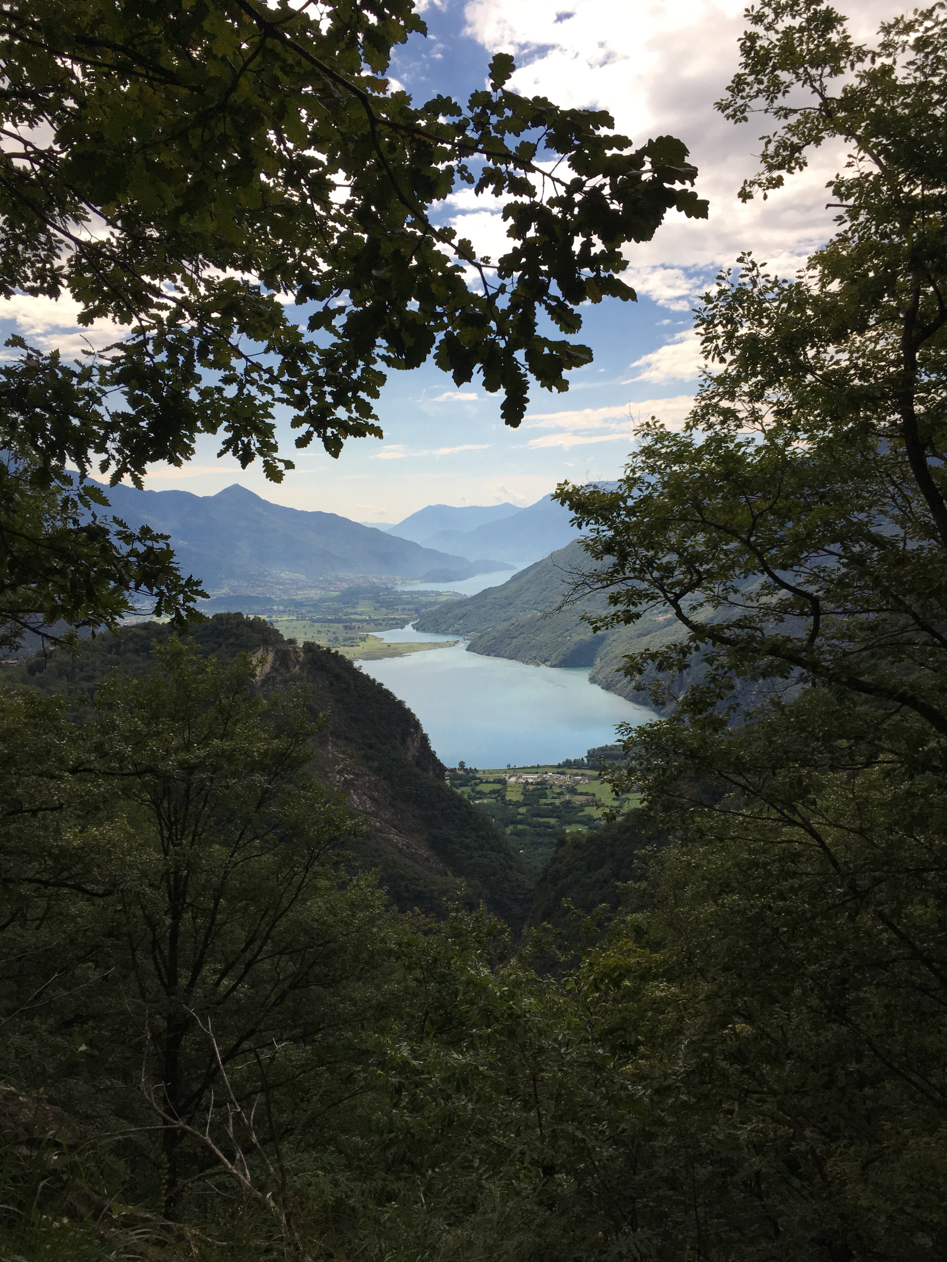 Der Weg wird schmaler und unter Kastanienbäumen auch wieder sehr schattig. Doch immer wieder hat das Laub ein Nachsehen mit uns und gibt traumhafte Blicke auf die Seen frei die im Süden liegen.