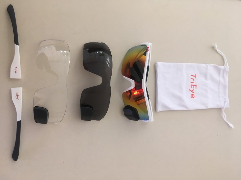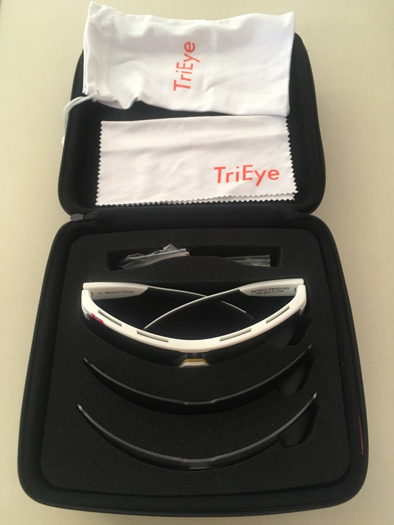 Die TriEye Sportbrille ist eine Radsportbrille mit integriertem Rückspiegel. Am linken unteren Rand der Brille befindet sich ein kleiner Spiegel, welcher einem den Schulterblick ersparen soll.