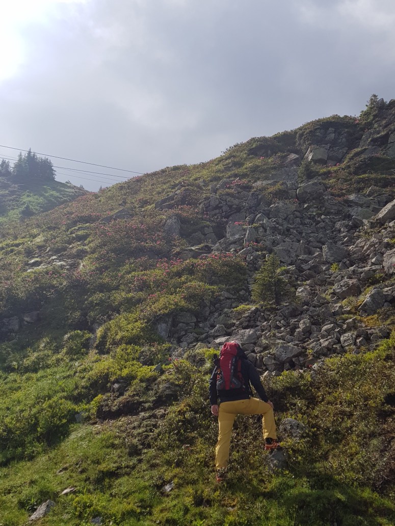 Wichtig ist dass man direkt nach dem Tunnel links abbiegt und nördlich vom Schwarzsee um diesen herumgeht um den Einstieg zu finden. Da wir nicht einmal den See gesehen haben sind wir dem normalen Weg gefolgt bis wir nach einiger Zeit den See hinter uns erkannten und wieder zurückwandern mussten.