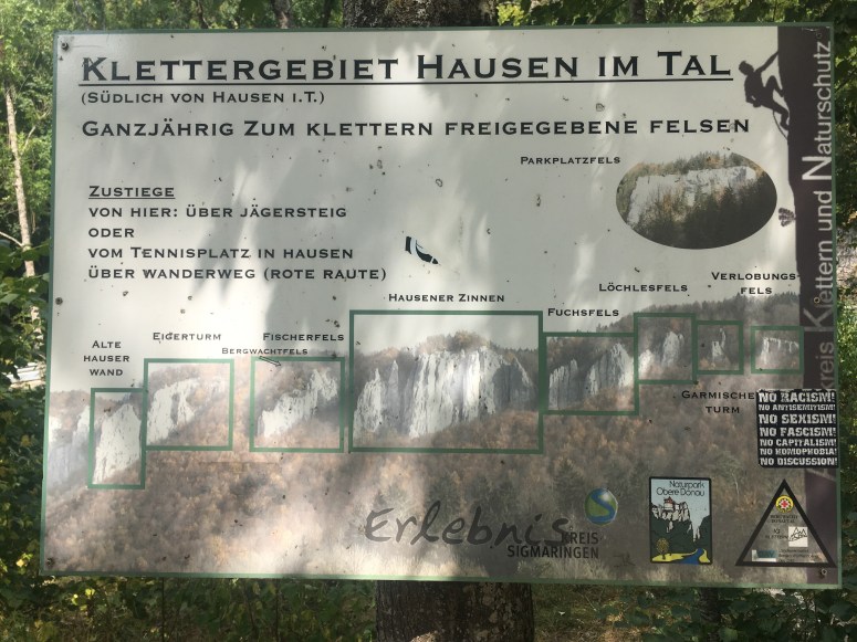 Im Donautal befinden sich zwischen Sigmaringen und Beuron ca. 25 verschiedene Felsen die für’s Klettern freigegeben sind. Das ist eine ganze Menge an Routen die man klettern kann.