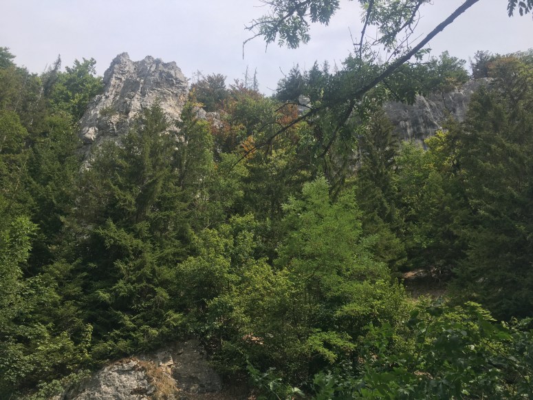 Zunächst machten wir im Donautal selbst noch einmal bei Inzigkofen Stop um eine letzte Route zu klettern. Den Regentropfen vom Verlobungsfelsen konnten wir für kurze Zeit davon fahren um eine schöne technische Route zu klettern.