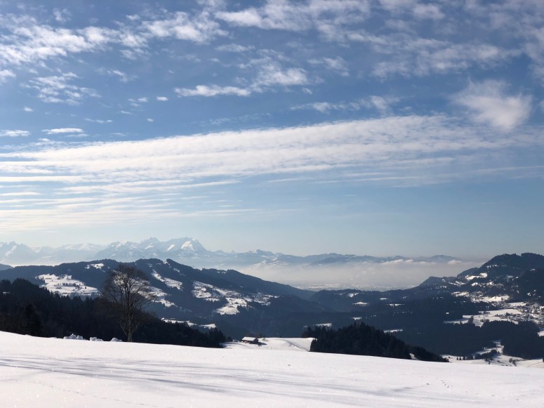 Langlaufen in Sulzberg heißt perfekt präparierte Loipen und traumhafter Ausblick auf das umliegende Allgäu sowie den Bregenzer Wald. Selbst das Alpstein ist, bei guter Sicht, zu bewundern.