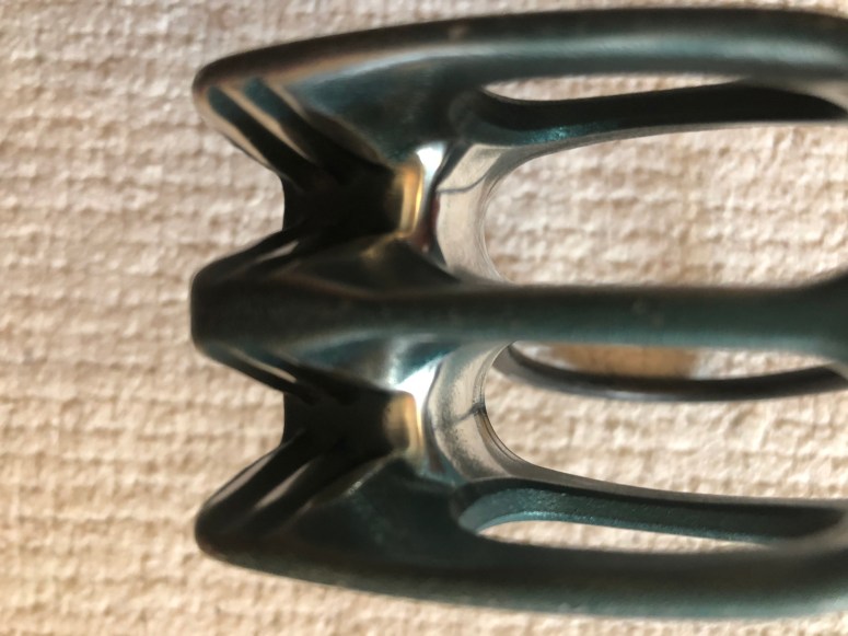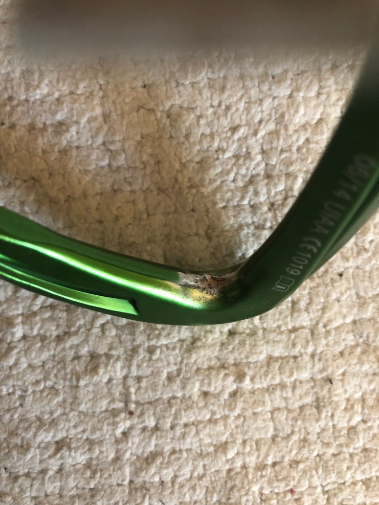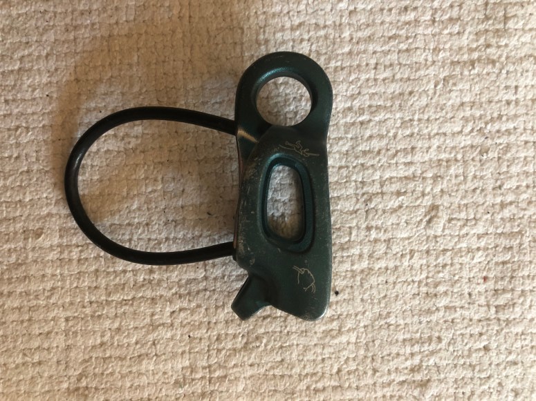 Beim Sicherungsgerät ist wichtig, dass man ihr darauf achtet wie oft das Sicherungsgerät und an den Fels geschlagen hat oder auch wie sonst damit umgegangen wurde. Eine Selbsthinterfragung ist hier wie bei allen Hardware Materialien nötig.