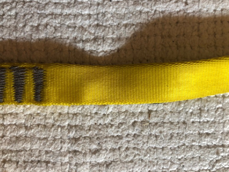Es gibt natürlich auch offensichtliche Mängel welche erkennen lassen, dass der Gurt unbedingt ausgewechselt werden muss. Hierbei handelt es sich um die Ausfransungen an den wichtigen Teilen des Gurtes. Das verarbeitete Bandmaterial, sowie die tragenden Nähte müssen höchsten Belastungen standhalten. Aufgeplatzte Nähte und lockere Schlaufen zeigen auf, dass der Gurt nicht mehr verwendet werden sollte.