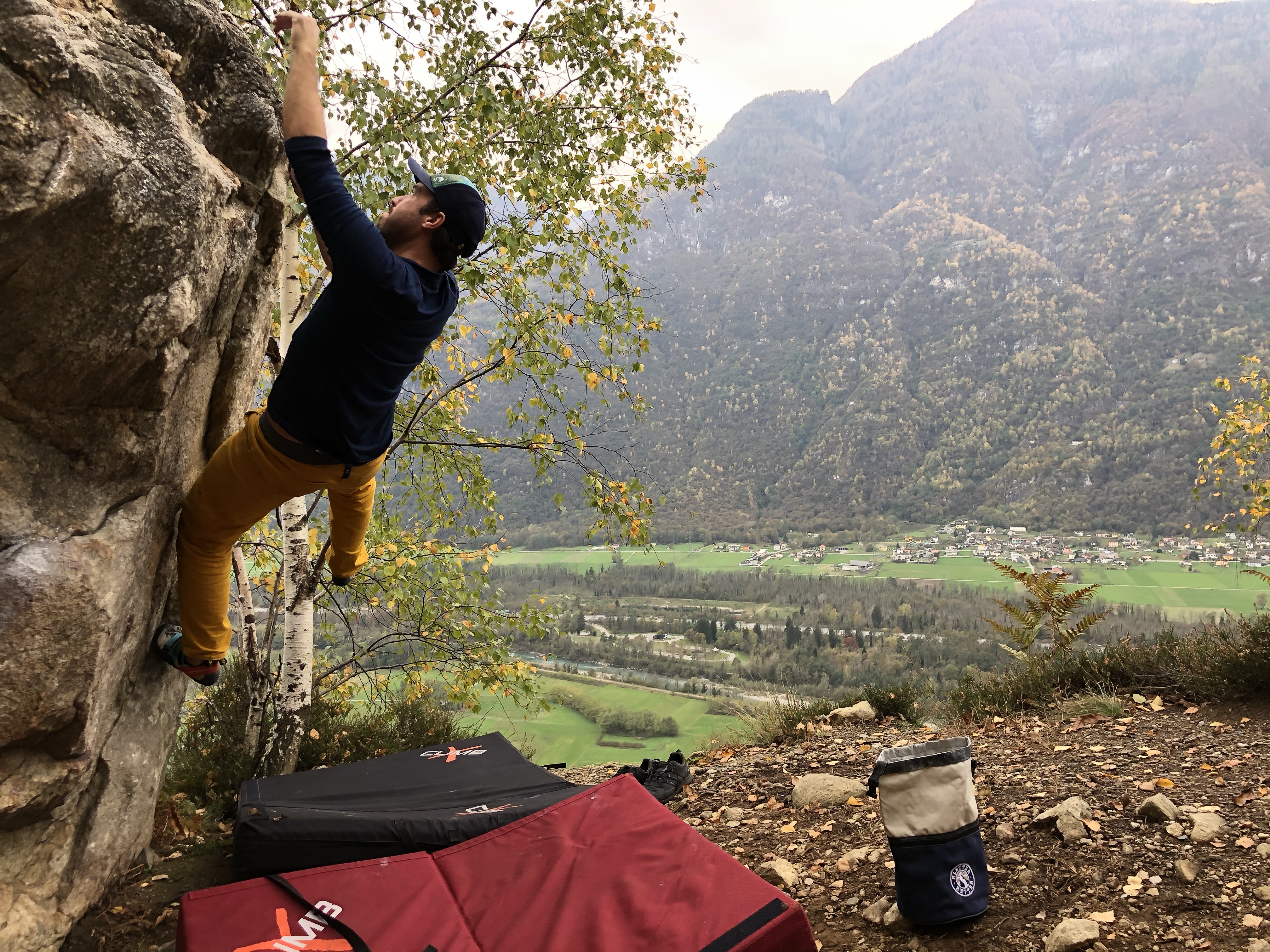 Es ist Herbst im Tessin. Die Kastanienwälder in und um Cresciano beginnen in den tollsten Gelb-, Rot- und Brauntönen zu leuchten. Die Sonne scheint, ist aber zum Glück nicht mehr so stark wie im Sommer und somit das perfekte Boulderwetter.