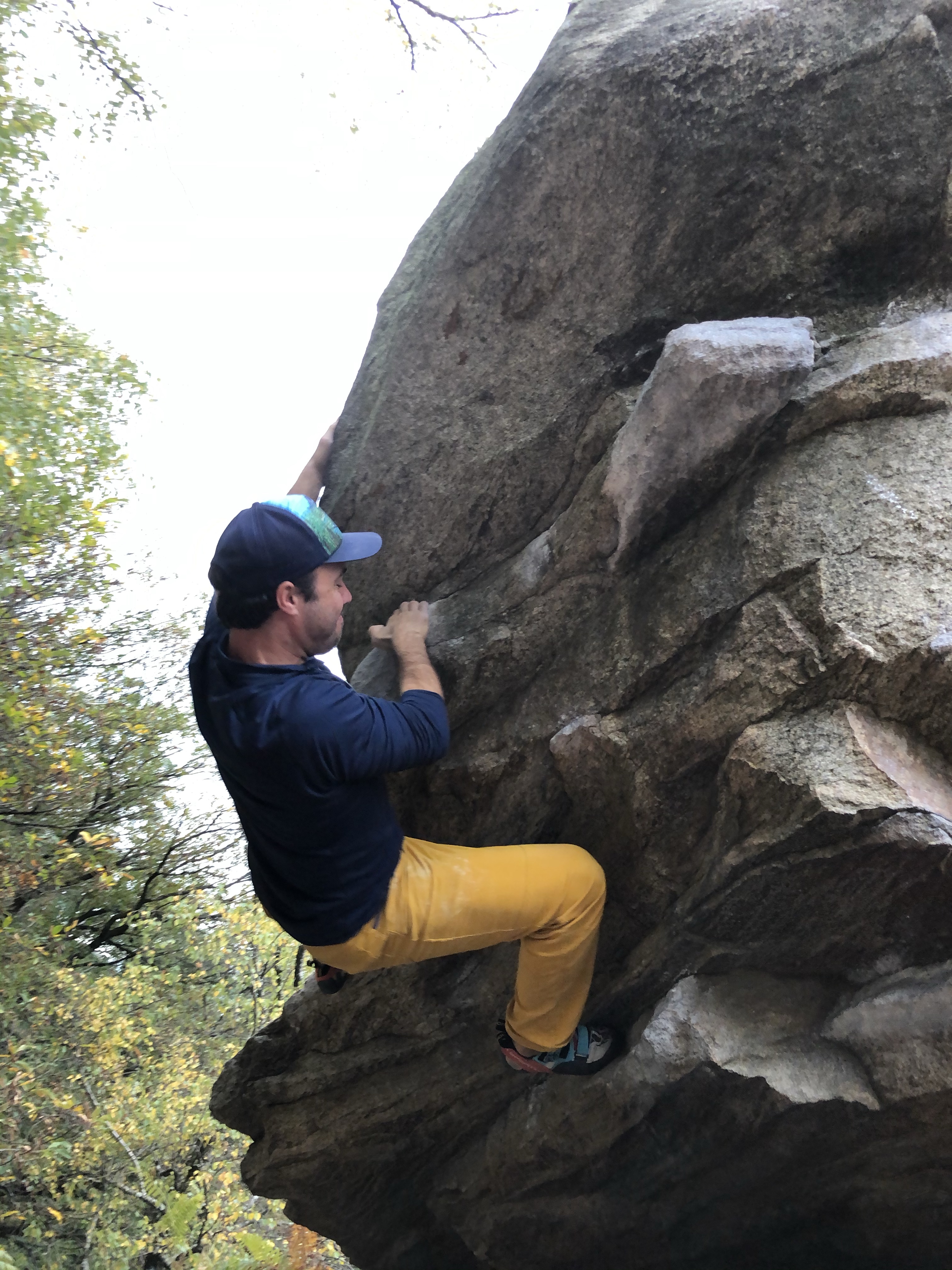 Durch die immer stärker werdende Sonne werden die kleinen Tritte und Griffe jedoch im Laufe des Tages immer schmieriger. Zum Glück befinden sich gleich nebenan zahllose weitere Boulder im Schutz des Waldes.