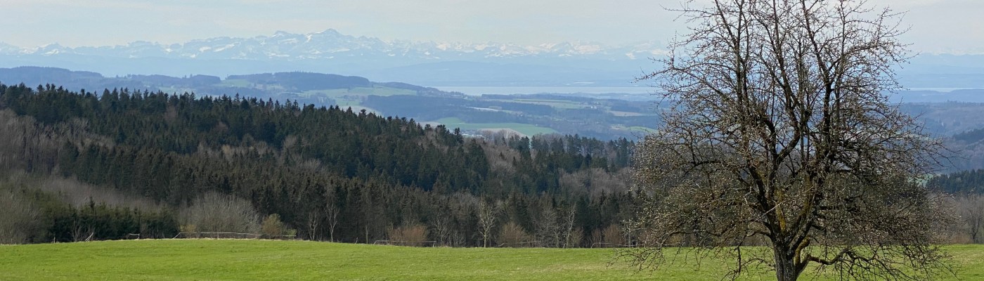 Von der Aussichtsplattform des Höchsten hat man einen wunderbaren Rundumblick und sieht die Alpen vom Allgäu und bei klarer Sicht, bis weit in die Schweizer Alpen.